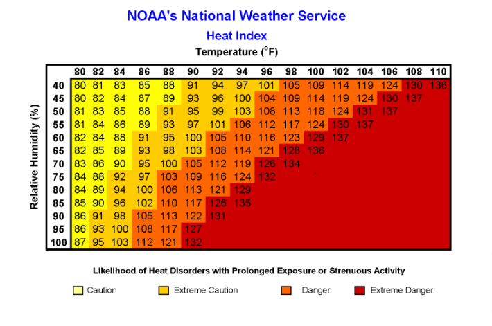 For outdoor community events, such as block parties, guided walks, or bike rides, we will reschedule if the conditions are in the NOAA “Danger” zone or if an Excessive Heat Warning has been issued for the time the event is scheduled.